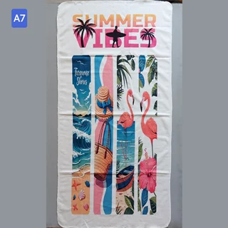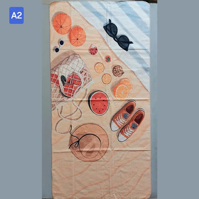 جنس: حوله ضخیم ورزشی (ضخامت مثل حوله های مسافرتیه) دور دوخت با چاپ سابلیمیشن رنگ ثابت. عزیزان کلن چاپهای سابلیمیشن رنگ ثابت هستند چون با پرینتر پارچه تحت حرارت چاپ میشن. این حوله ها نسبت به اون سایز کوچیک ها ضخیمتر و جذب آب بهتری دارن و بیشتر مناسب حمام و استخر و ساحل مسافرت هستند. اگه به عنوان زیرانداز توی باشگاه میخواهید از همون سایز کوچک ها تهیه کنید.