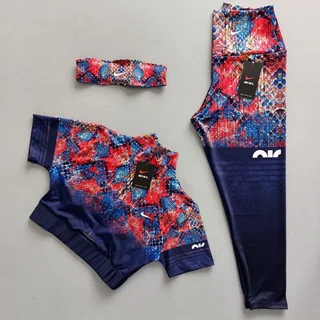 جنس هر سه تیکه : میکرو غواصی محکم با ضخامت متوسط و کشسانی زیاد. قد لگ 83 سانت قد فاق 30 سانت. قد کراپ 33 سانت. داخل کمر لگ کش ندارد. کراپ نیم زیپ بدون کاپ هست و داخل کمرش کش محکم 5 سانتی دارد. سایز L: دور سینه(کراپ) 80 سانت کشسانی تا 100 و دور باسن(لگ) 86 سانت کشسانی تا 110. سایز XL: دور سینه(کراپ) 85 سانت کشسانی تا 105 و دور باسن(لگ) 90 سانت کشسانی تا 120. دور کمر چه برای کراپ چه برای لگ ش مهم نیست چون هم محکمه هم کشسانیش زیاده کوچیک یا بزرگ نمیشه. از نظر کیفیت هم خیالتون راحت باشه پارچه هر 3 تیکه ی لباس همون میکرو غواصی معروفه که تو اکثر لگای ما استفاده میشه.