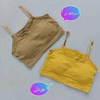 جنس: پلی استر نخ تمامکش کاپ متحرک. فریسایز مناسب 36 تا 40. دور سینه 65 سانت کشسانی تا 95 سانت. کمر کار هم 3 سانتی هست. توجه: رنگ نسکافهای یکم به زیتونی میزنه خیلی کم. جنس زنجیر هم صاف و نرمه پوست اذیت نمیکنه.
