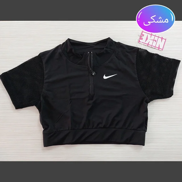 کراپ ورزشی زنانه نیم زیپ آستین تور نایک 42 44