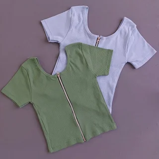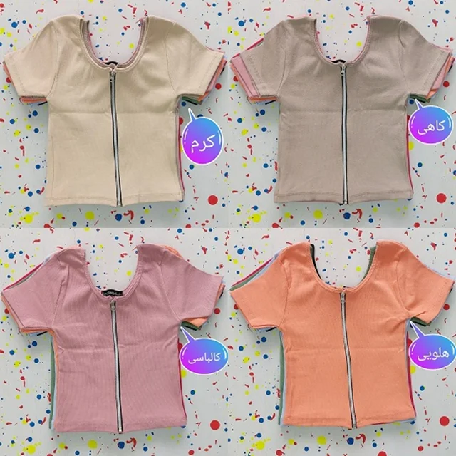 کراپ زنانه آستین کوتاه جلو زیپ 36 تا 42