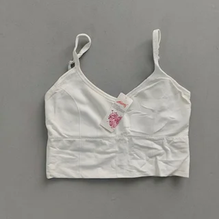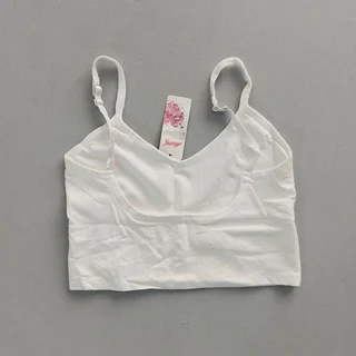 جنس پلی استر نخ تمام کش . فری سایز مناسب 36 تا 42.بدون کاپ ولی جا برای قرار دادن کاپ داره. یکم زرد شدهبخاطر رطوبتی که تو بار بوده ولی سالمه زدگی نداره