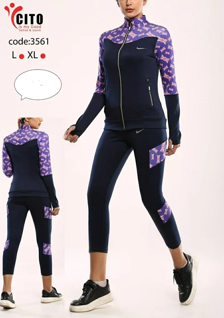 ست ورزشی زنانه سویشرت و لگ زمینه سرمه ای