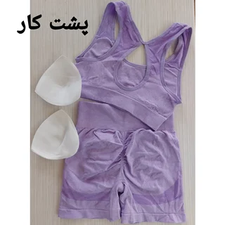 ست ورزشی نیم تنه شورتک زنانه پشت چین دار سیملس